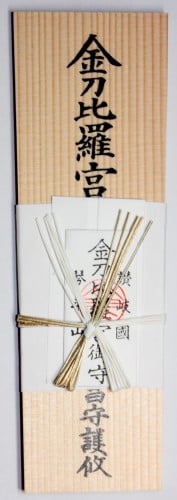 金刀比羅宮の御札は水引きが独特です。金刀比羅宮は「ことひらぐう」と言いますが、通称「こんぴら」さんと言われ親しまれています。金刀比羅・琴平・金比羅などの漢字で書かれる場合もあります。